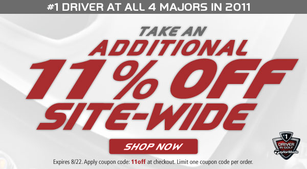 TaylorMade Certified Preowned is offering an additional 11% off storewide to celebrate TaylorMade Golf’s #1 Driver at all 4 Majors Status.
