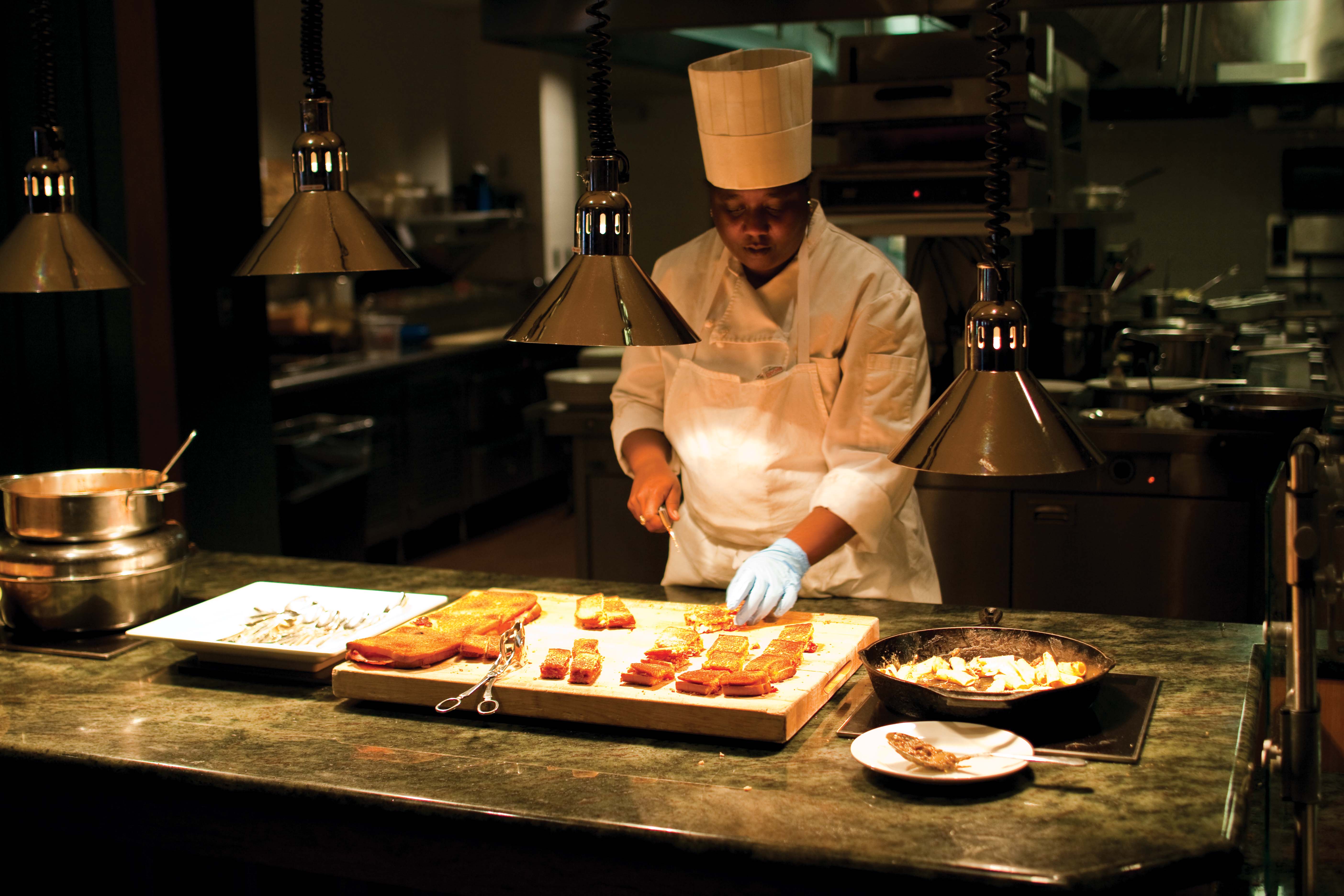 At the Williamsburg Lodge: The comfortable Lodge Restaurant infuses international flavor palettes with Southern favorites. Whether looking for an elegant prix-fixe menu with wine pairings for every course or a casual meal with the family, the Lodge Restaurant has